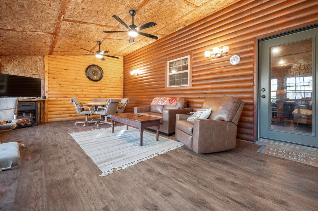 With everyone under one roof, you don’t have to miss a thing. Bring the whole family or a group of friends!Featuring three decks; two balcony decks off of the upstairs bedrooms, the other deck just off the kitchen for grillin'. This cabin has lots of space for your big group to relax. The two private bedrooms have queen beds. The loft has a twin size bunk bed and a full size bed. The living area has a hide a bed couch. Sleeps 11. Pets allowed with paid fee( DOGS ONLY), two maximum. Check in time is 4:00 pm, Check out is 11:00 am.