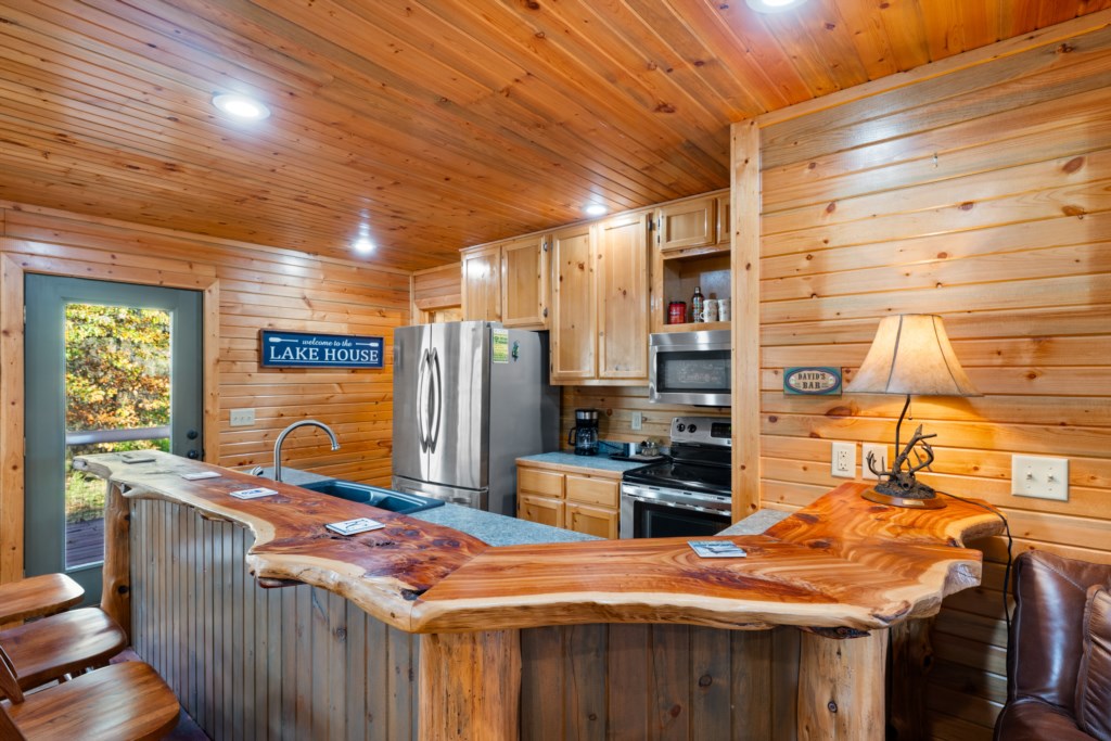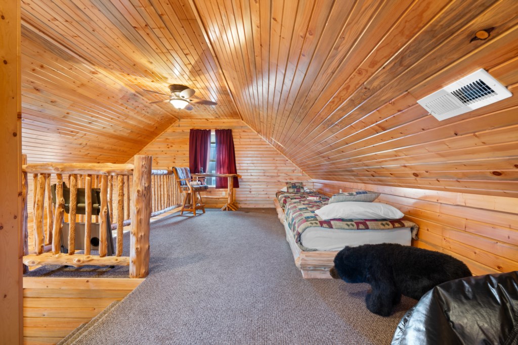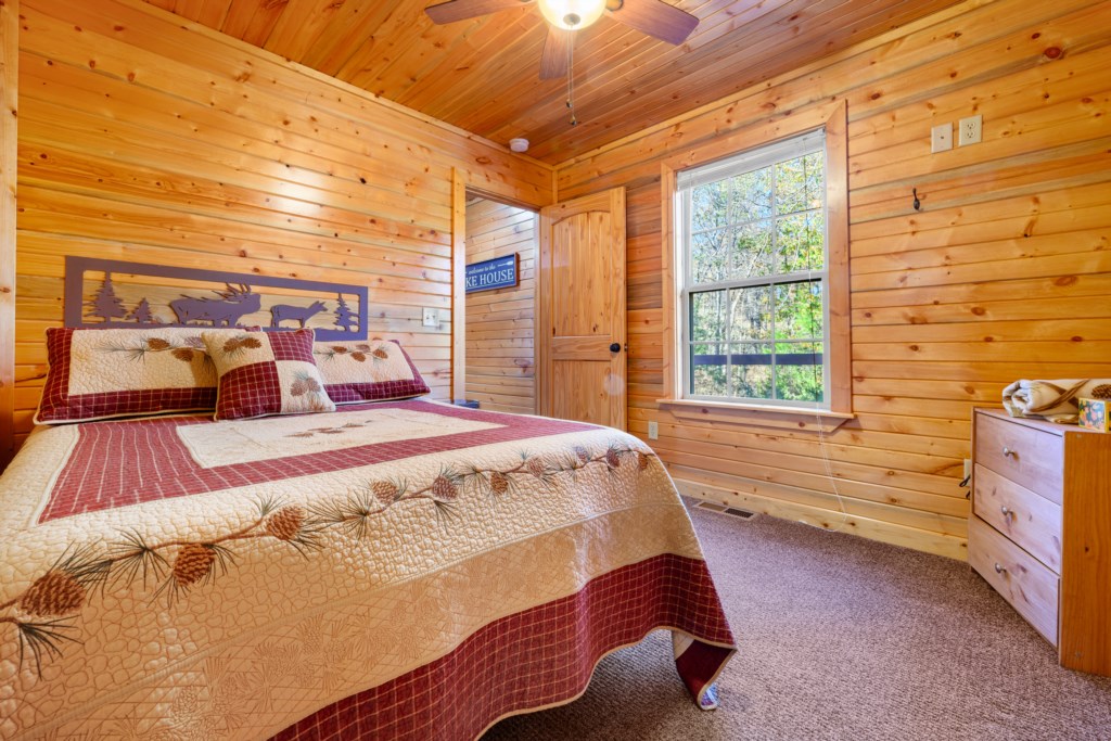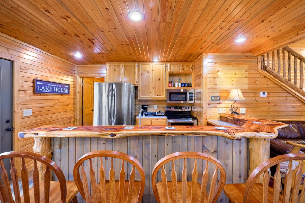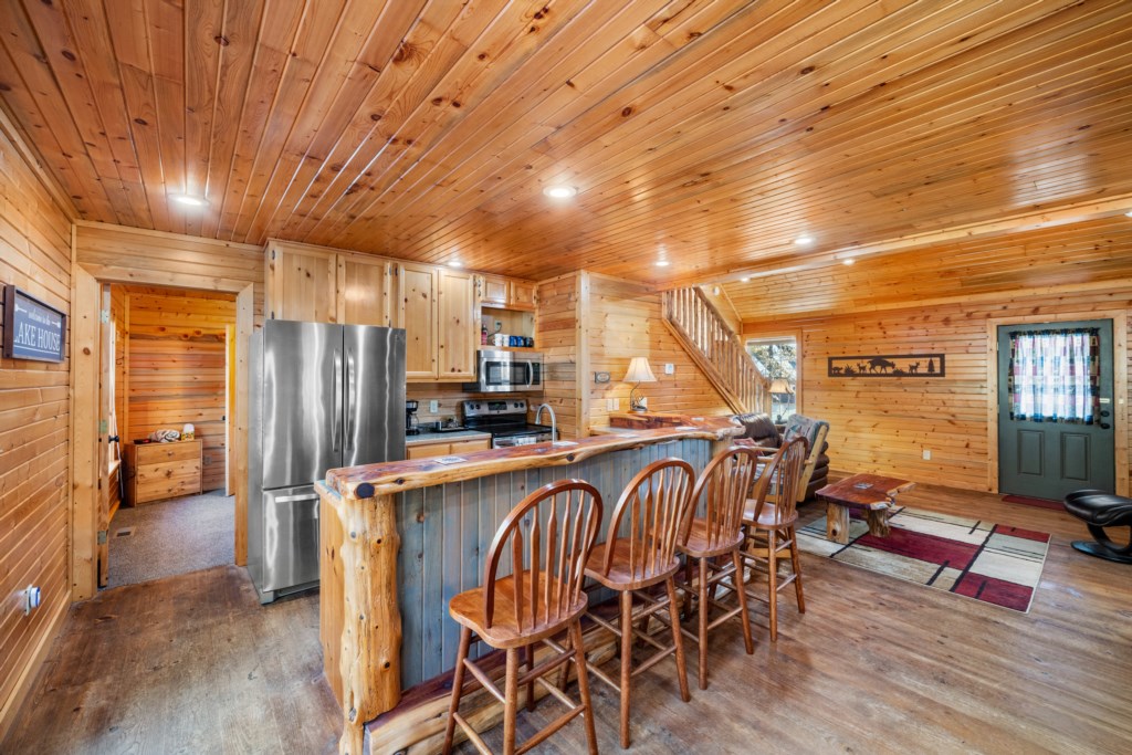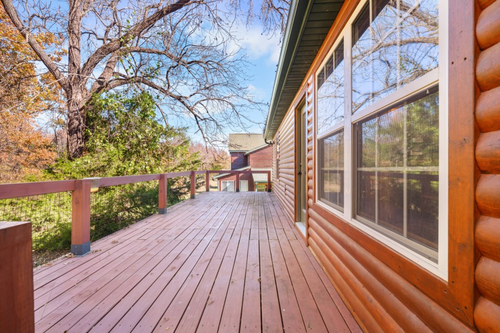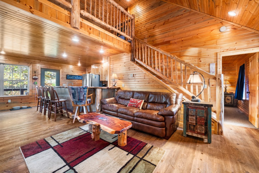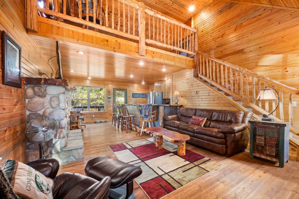 Escape to tranquilty in this charming cabin nestled at the edge of stunning Corps of Engineers land. Wake up to breaktaking views framed by a large picture window- where deer, wild turkey and other native wildlife often make a peaceful appearance. Whether you're sipping coffee or winding down after a day of adventure, nature is always just outside your door. With three spacious bedrooms, a loft, and two full baths this cabin comfortably sleeps 9 guests, making it perfect for families or small groups. The open layout and rustic charm offer a warm, inviting atmosphere for relaxation and connection. Traveling with your furry friend? The fenced in patio provides a safe and secure space for your dog to enjoy the outdoors right alongside you. Anchor Down, breath in the fresh air, and enjoy your stay- this cabin is your perfect base for exploring, unwinding, and making memories in the heart of nature.